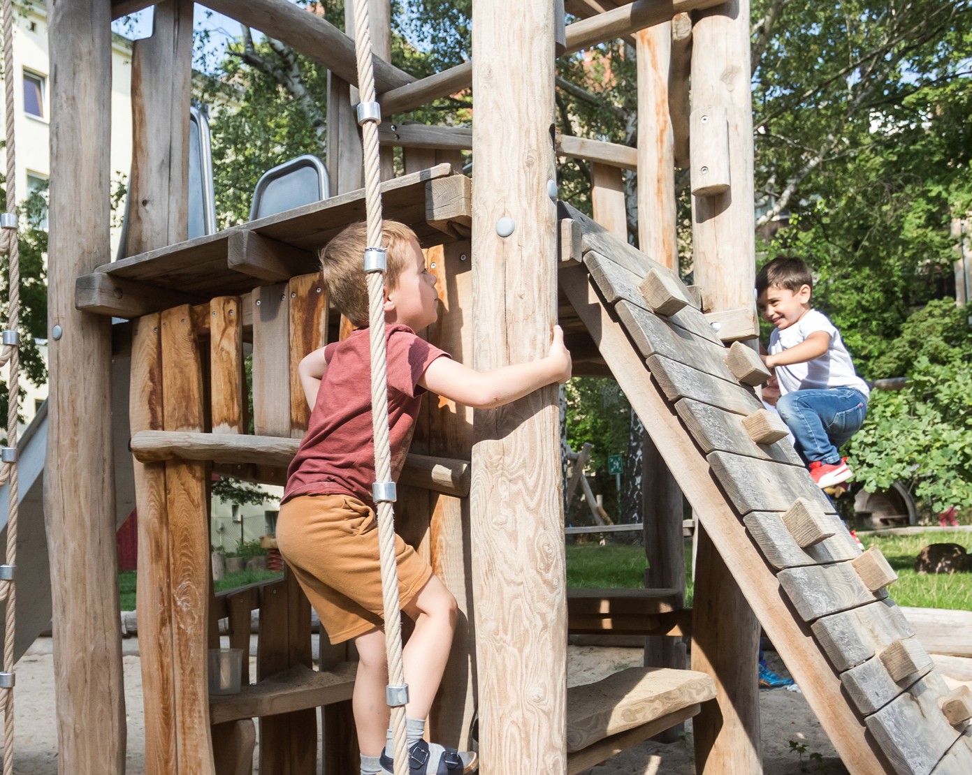 An unserem Standort in Berlin-Spandau bieten wir über fünf Etagen hinweg verschiedene stationäre Hilfsangebote für Kinder und Jugendliche – darunter eine Intensivwohngruppe, zwei Kleinkindgruppen sowie Wohngemeinschaften für Jugendliche.